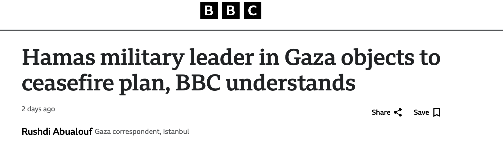 The deal itself, brokered by Washington is undeniably flawed. It delivered the plausible deniability for Israel to continue their genocide when Hamas rejected it, a rejection that seemed almost inevitable under the terms offered. However, Hamas’ response indicated that they simply want the slaughter to end, even if it means that their organisation must hand over power in the Gaza Strip. Western outlets, like the BBC, had sowed the seeds for this rejection, running stories implying that it had already happened, seemingly prepared for what everyone thought was a certain rejection.